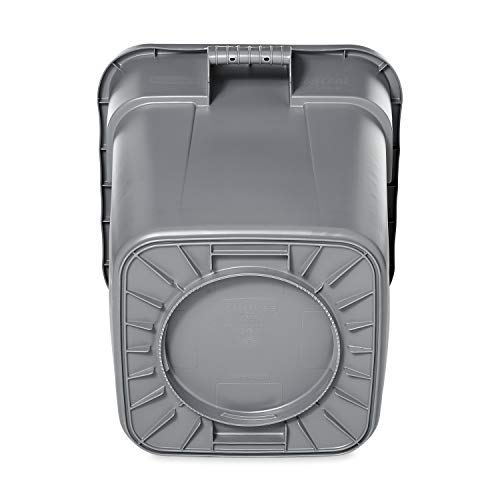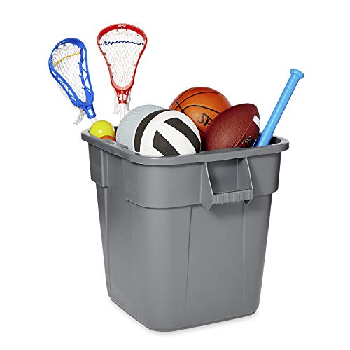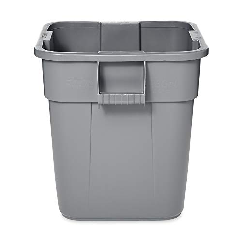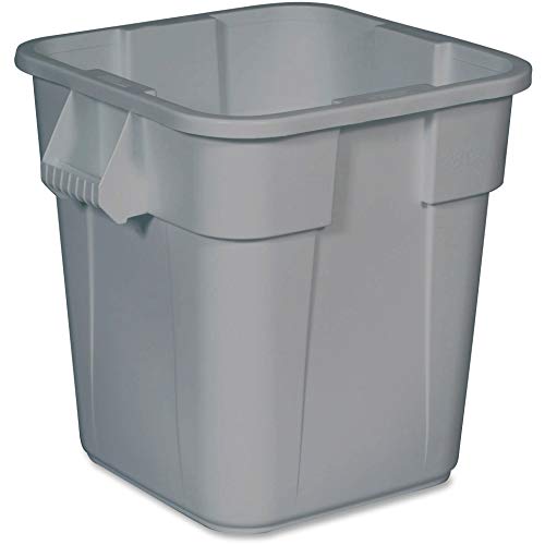 Rubbermaid Commercial FG352600GRAY LLDPE Square Brute 28-Gallon Trash Can without Lid, Gray. Square shape offers up to 14% more capacity than round containers. Rounded corners and smooth contours are easy to clean. Certified to NSF Standards #2 and #21. 21.5 inches long by 21.5 inches wide by 22.5 inches high. 9.001 pounds. Made in the USA.