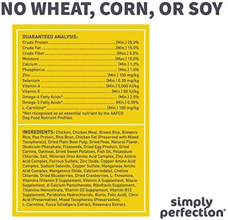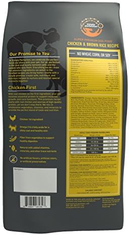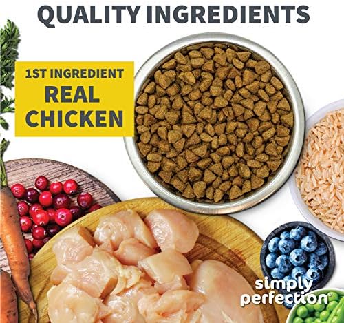 Simply Perfection Super Premium Chicken & Brown Rice Recipe Dry Dog Food is a tasty meal your dog is sure to love This premium formula supplies protein and healthy fat to support your dog’s energy and fiber to support healthy digestion The recipe is made with chicken as the first ingredient plus vegetables vitamins and minerals to meet your dog’s nutritional needs as a complete and balanced meal A simple but perfect recipe made by Simply Perfection