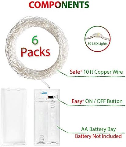 6 Pack x 10ft BRIGHT 30 LED FAIRY STRING LIGHTES- Can light anything up with these fairy lights, ideal for bedroom, table, wedding, party, Christmas & New Year Decoration.Suitable for various scenarios,widespread lighting source, provide powerful light, and create romantic life for you