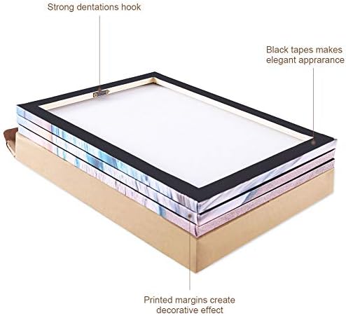 Canvas paintings are all wrapped and stretched on wooden frame with hooks mounted on each panel for easy hanging.