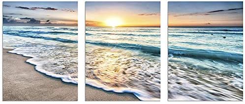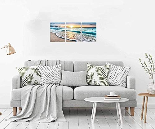 TutuBeer 3 Panel Beach Canvas Wall Art for Home Decor Blue Sea Sunset White Beach Painting The Picture Print On Canvas Seascape The Pictures for Home Decor Decoration,Ready to Hang