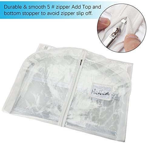 Transparent for Easy ViewingWaterproof, Resists Dust, Stains and MorePVC Garment bags are lightweight, sturdy, comfortable and soft4 Medium clear zipper pockets in the measures 11.4″x7.87″ perfect for your hair ties, makeup box, dance shoe etc.