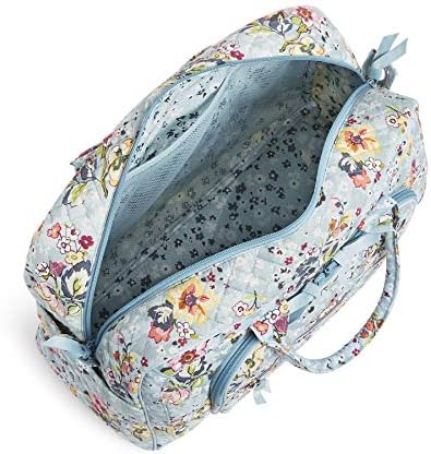 Signature cotton is colorful and lightweight. Exterior features 1 slip and 2 zip pockets. Interior features 5 mesh pockets. Trolley sleeve. Removable strap. Zip closures. Capacity 20 L. Spot Clean. Carry On Compliant.