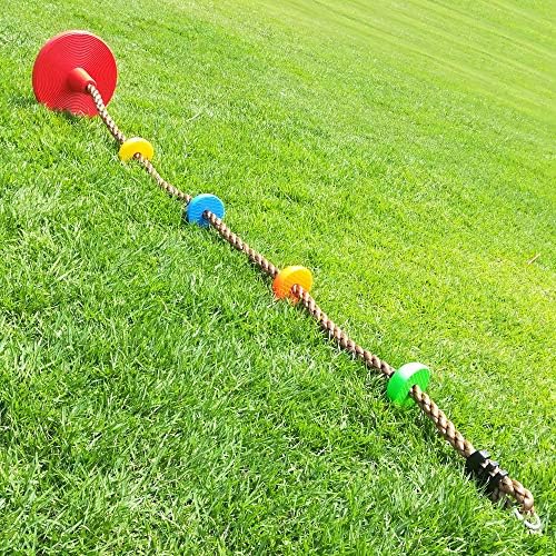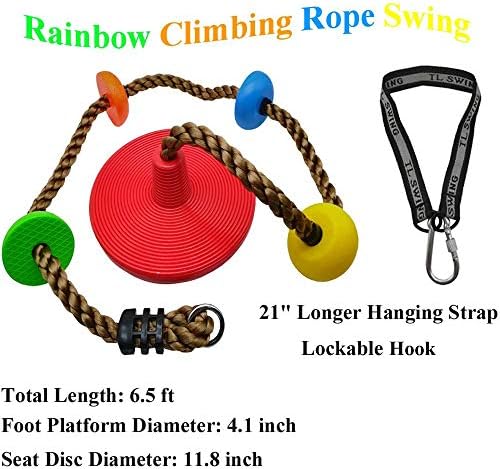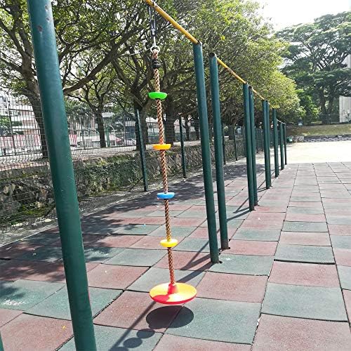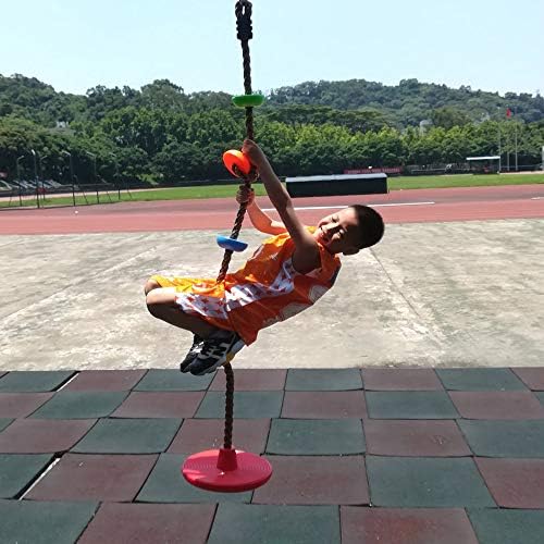 ▶[DURABLE] Adopt Heavy Duty Material, Made of 1″ Diameter Strong But Soft Rope, 4 Pcs 4.1″ Diameter Colorful Foot Holder Platforms, And a 11.8″ Diameter Durable Disc Swing Seat,Total 6.5ft Height. Durable Design and 220lb Weight Capacity, Ensure This Kid Climbing Rope Swing Will Keep Hours of Fun and Last for Years