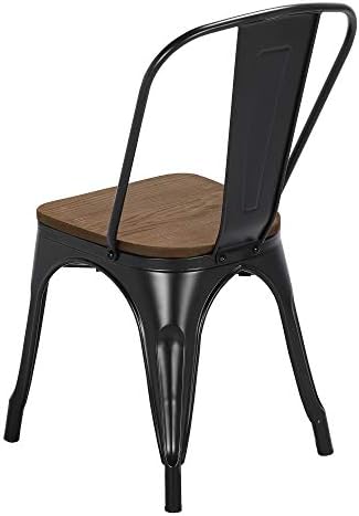 Metal Dining Chairs w/Wooden Seat Classic Chic Bar Chairs Trattoria Bistro Cafe Shop Stackable Side Chairs Set of 4